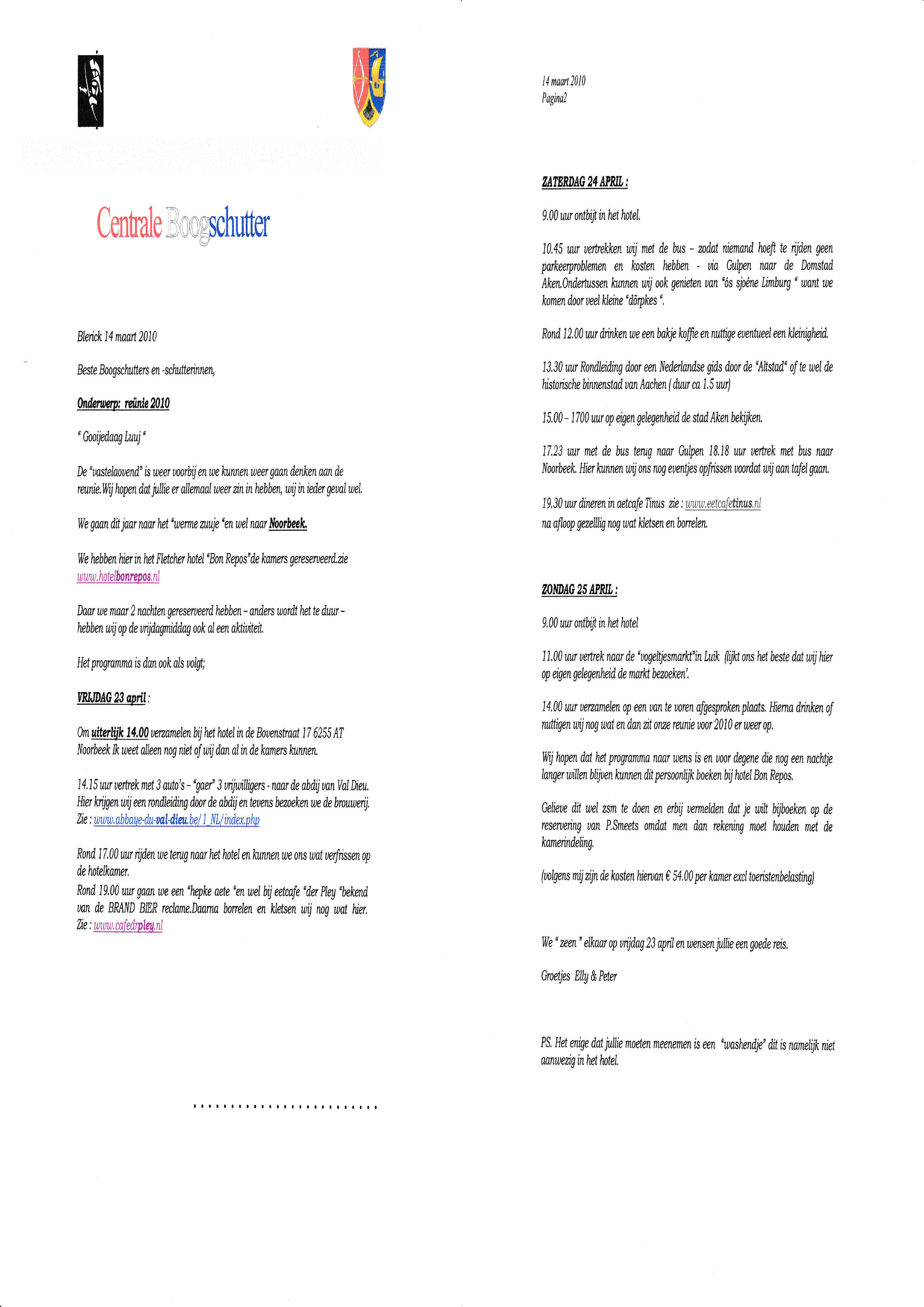 Zoals bekend is de reünie dit jaar van 7 april t/m 10 april a.s. en wij, Ton en Gerda, waren dit jaar weer de “klos” voor de organisatie.